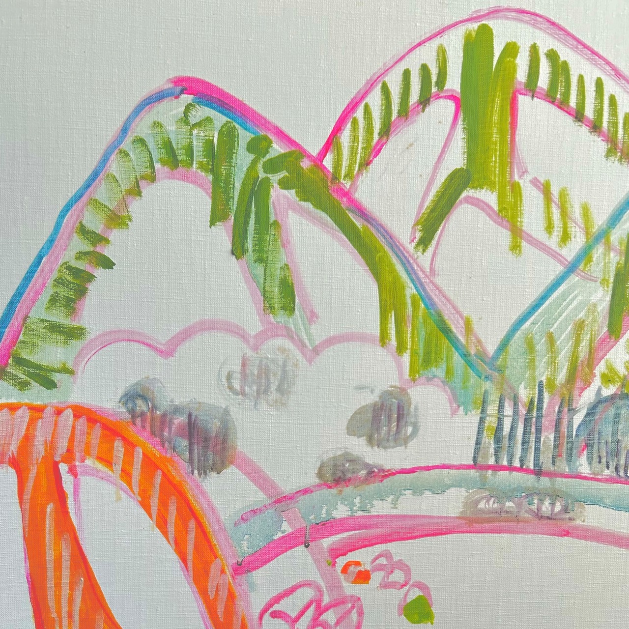 ◆この作品は、冬にわかさぎ釣りに行った帰りにひらめきました。ハゲた山肌が白い雪に包まれ、氷の上にはカラフルなテントがポツポツ並ぶ。この光景は、絵の具を落としたかのようなPOPな世界観とわかさぎ釣りの渋さのギャップがオツです。