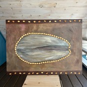 ◆この作品は、ピスタチオを大胆に貼り付けたユニークなアートです。茶色とコーヒーカラーを基調にした背景は、その場所の温かみを引き立て、見る人に心地よい空間を提供します。ナッツの存在感が際立ち、シンプルながらもかっこよく仕上がっています。