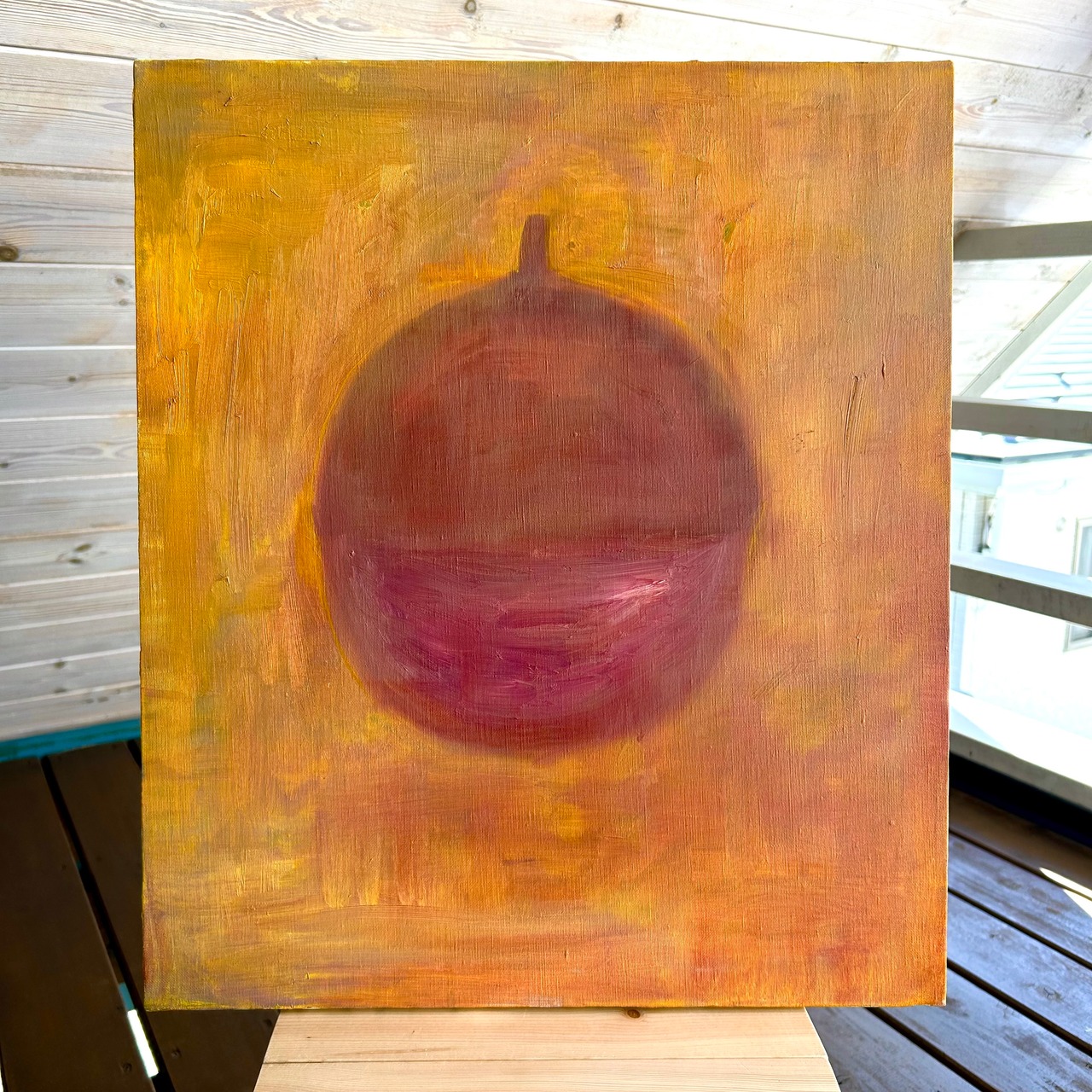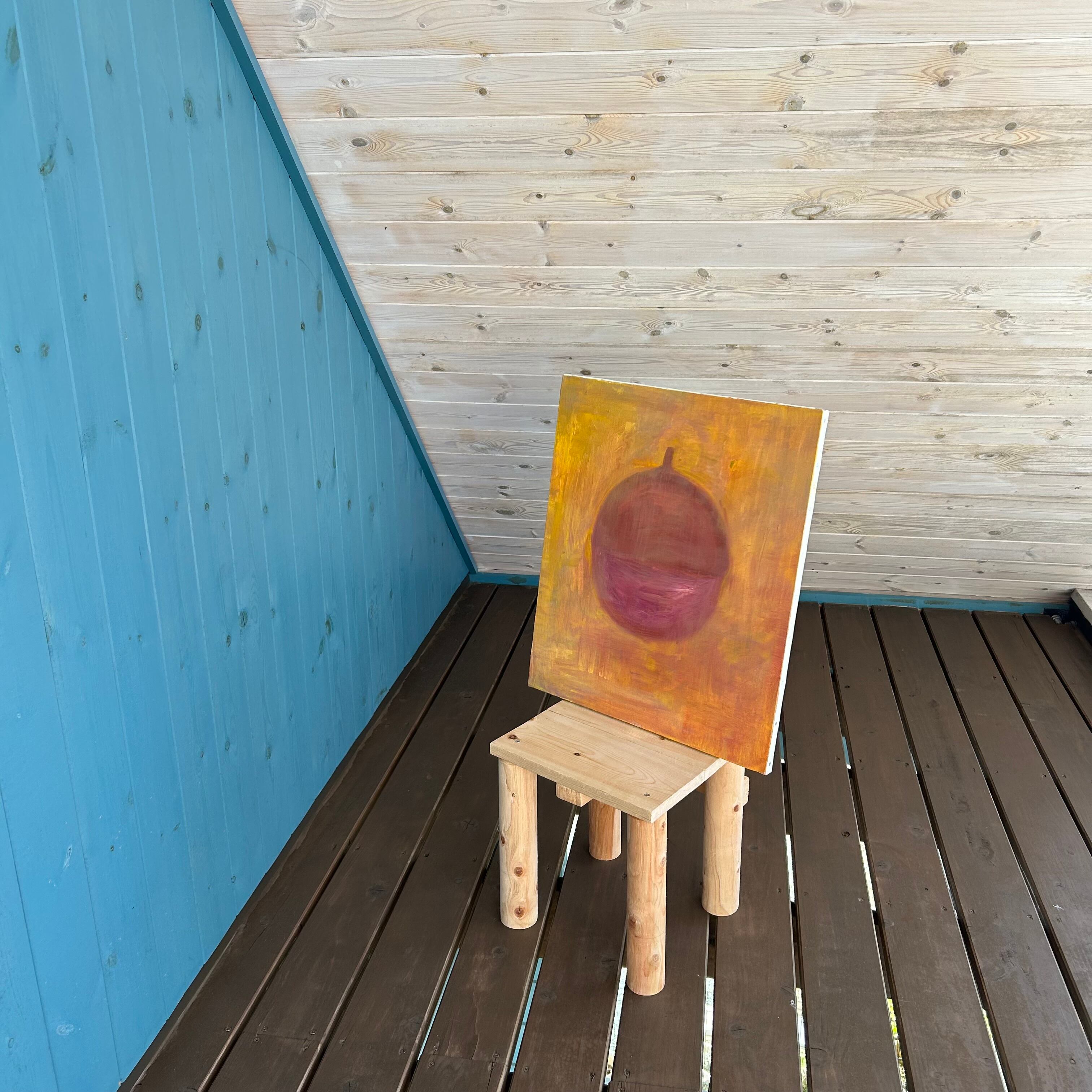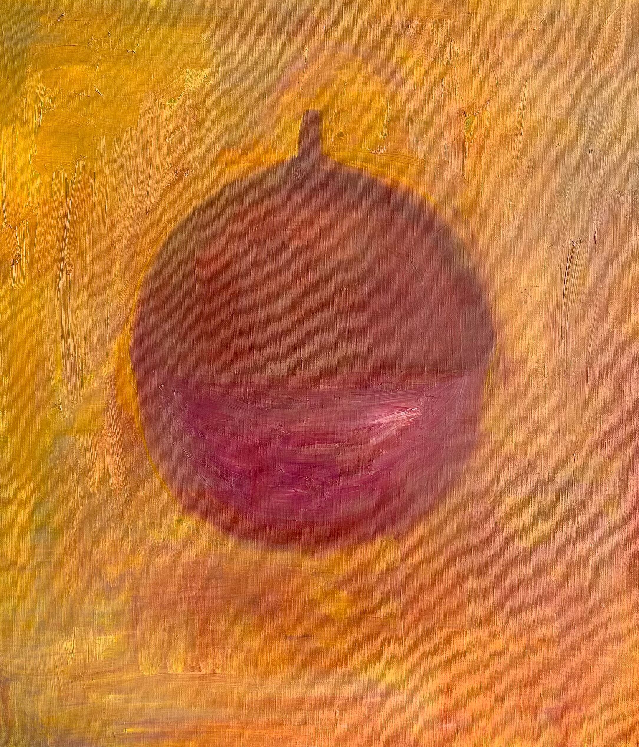 ◆この作品は、秋の豊かな実りを表現しています。一つの木から時間を経て形成された丸い木の実が、黄土色や黄金色、深い紅色でツヤツヤと輝いています。昔昔、拾ったどんぐりを愛で観察したあの日が思い出されます。